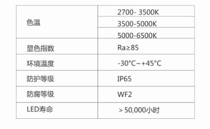 采用無銅壓鑄鋁合金外殼表面噴涂聚酯粉末具有良好的耐高溫、耐腐蝕性。鋼化玻璃燈罩具有良好的投光性能。
